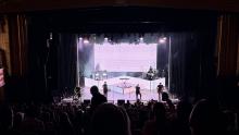 Interesting LX design featuring overhead trusses / side lighting / floor lighting for the orchestra and multiple vertical trusses.